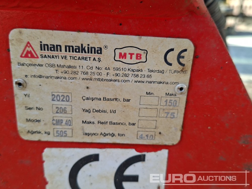 2020 Inan Makina CMP 40 Hydraulic Compaction 45mm Pin to suit 4-6 Ton Excavator - 130037094