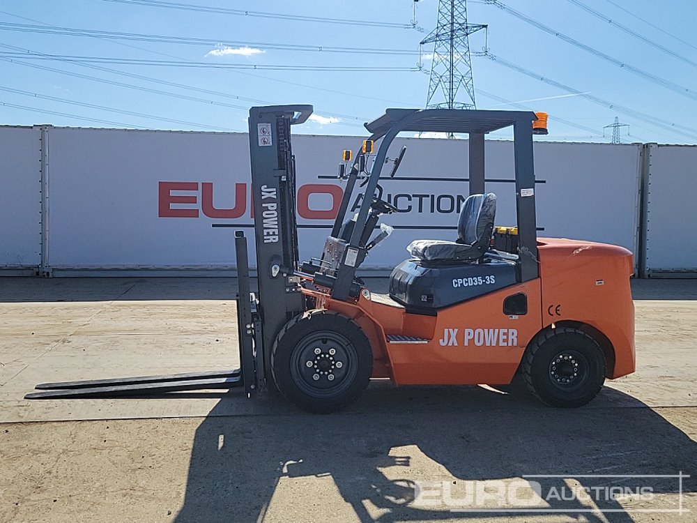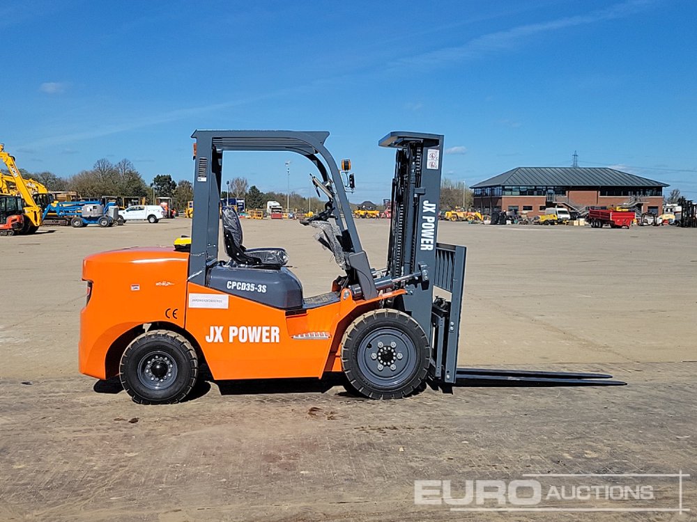 Unused 2026 JX POWER CPCD35-3S Diesel Forklift, 3 Stage Free Lift Mast, Side Shift, Forks - JXPOWER202601FK11