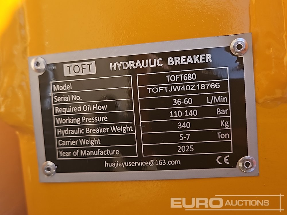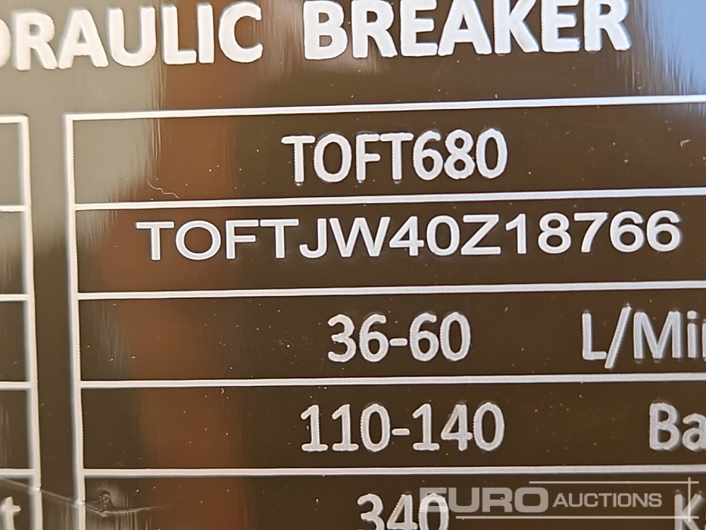 Unused 2025 Toft 680 Hydraulic Breaker - TOFTJW40Z18766