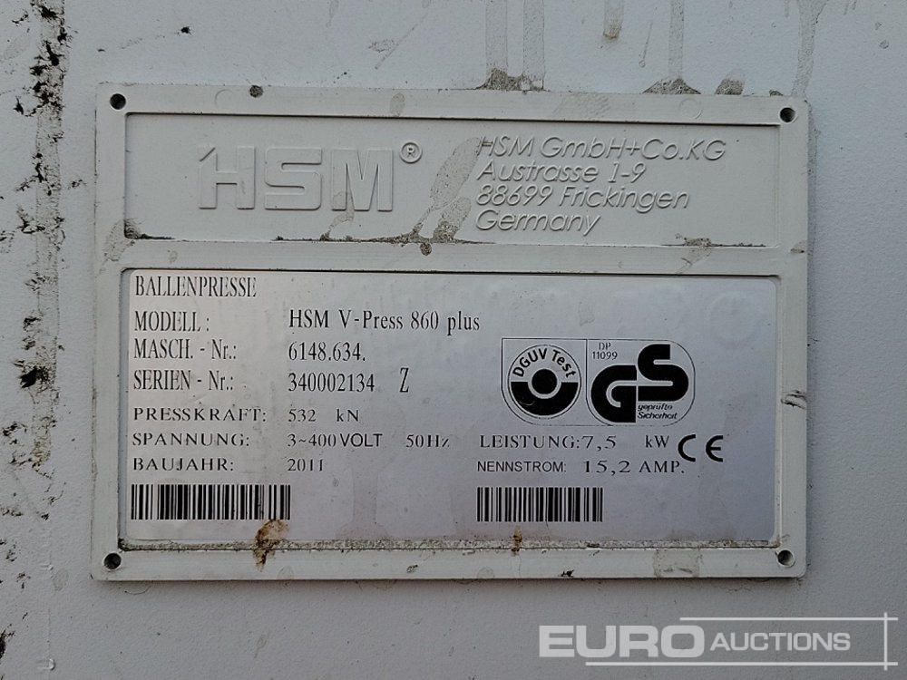 2011 HSM V-Press 860 Plus 400Volt Waste Compactor - 340002134