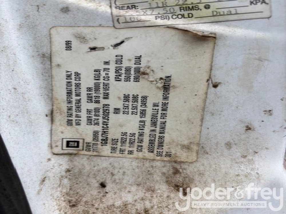 2000 Chevrolet 3500 4x2 Fuel Truck, CAT 3126 Engine, 2,000 Gallon Tank (Meter Reading: 222809 Miles) - 1GBJ7H1C4YJ502978
