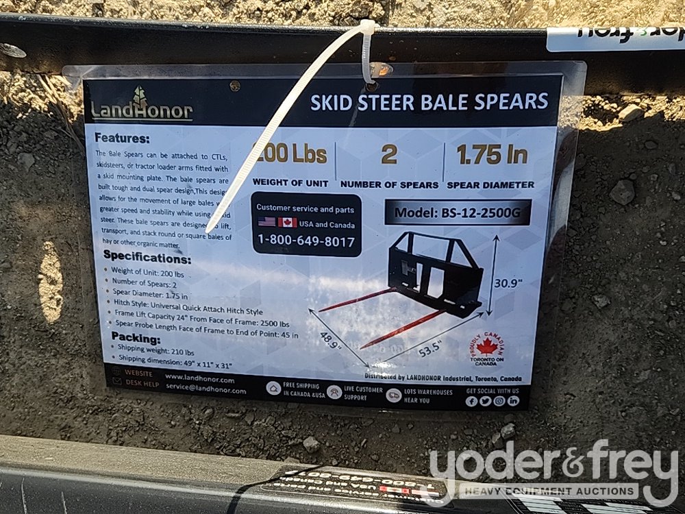 Unused 2025 Landhonor BS-12-2500G Bale Spear to suit Skidsteer - HL-01537