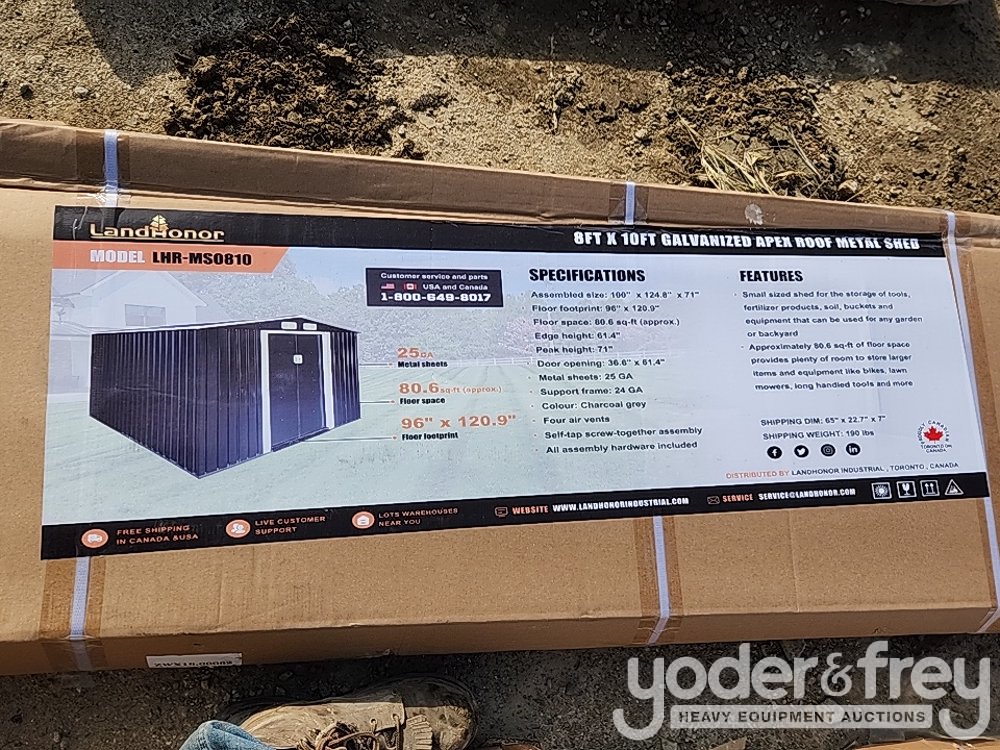 Unused 2025 Landhonor LHR-MS0810 8ft x 10ft Galvanized Apex Roof Metal Shed - 540004004-60