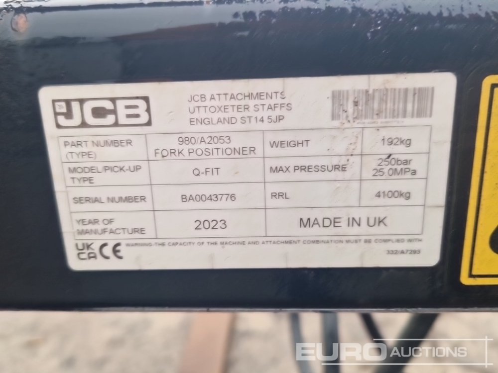 Pallet Forks & Fork Postioner to suit JCB Telehandler - 100362965