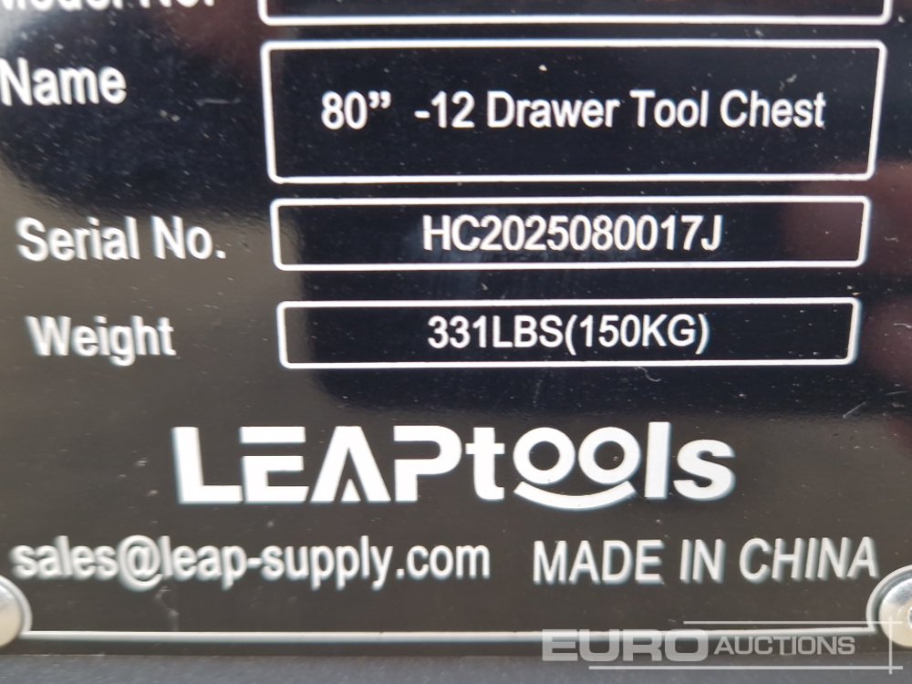 Unused 2026 LEAPTOOLS LT80TC12D 80” 12 Drawer Tool Chest - 140517180