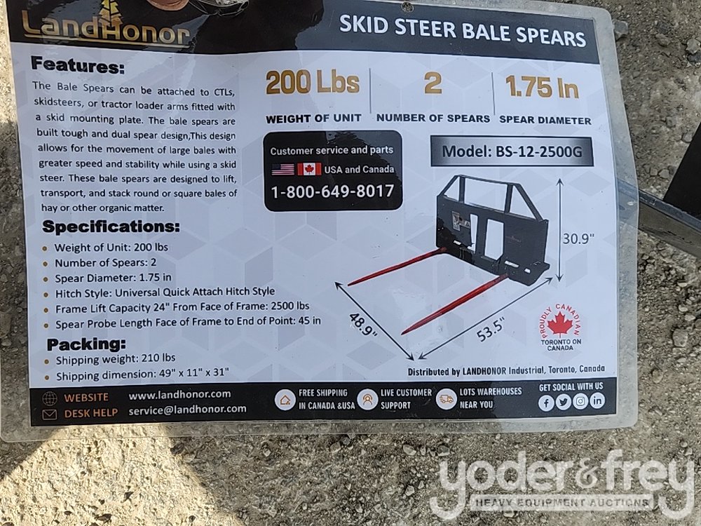 Unused 2025 Landhonor BS-12-2500G Bale Spear to suit Skidsteer - HL-01539