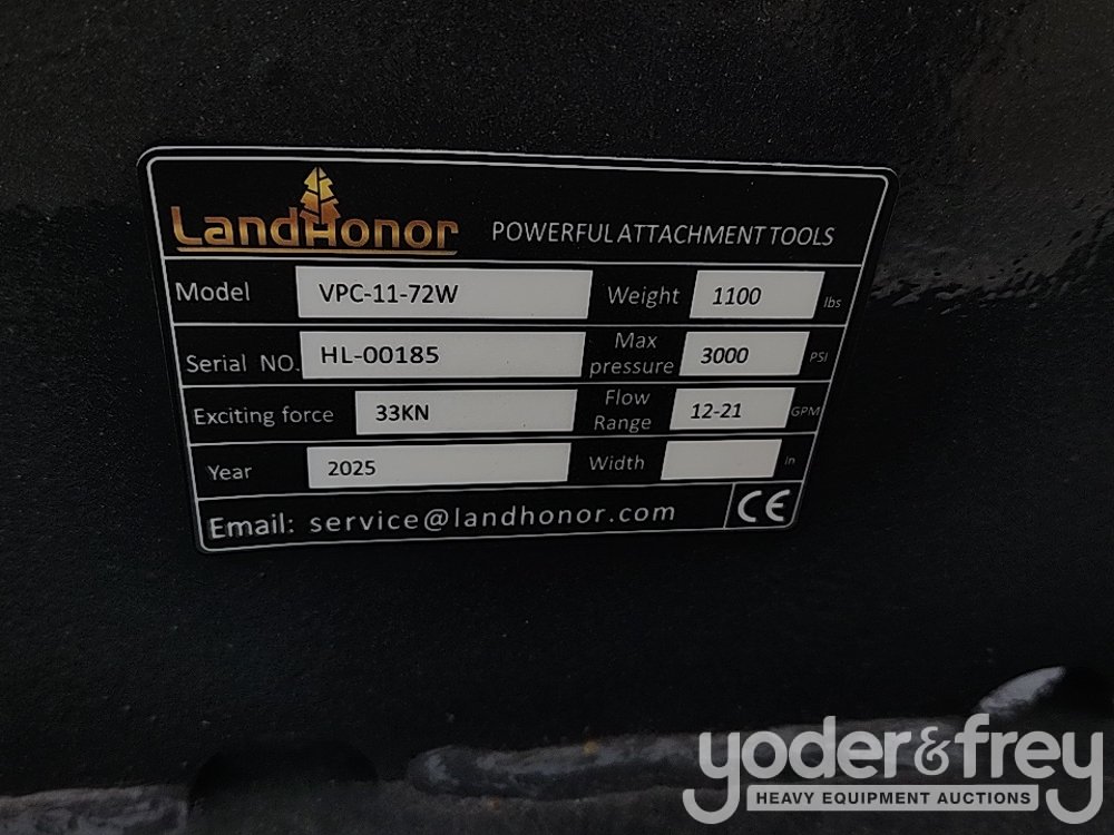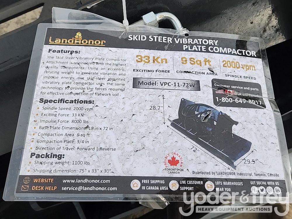 Unused 2025 Landhonor VPC-11-72 Vibratory Plate Compactor to suit Skidsteer - HL-00185