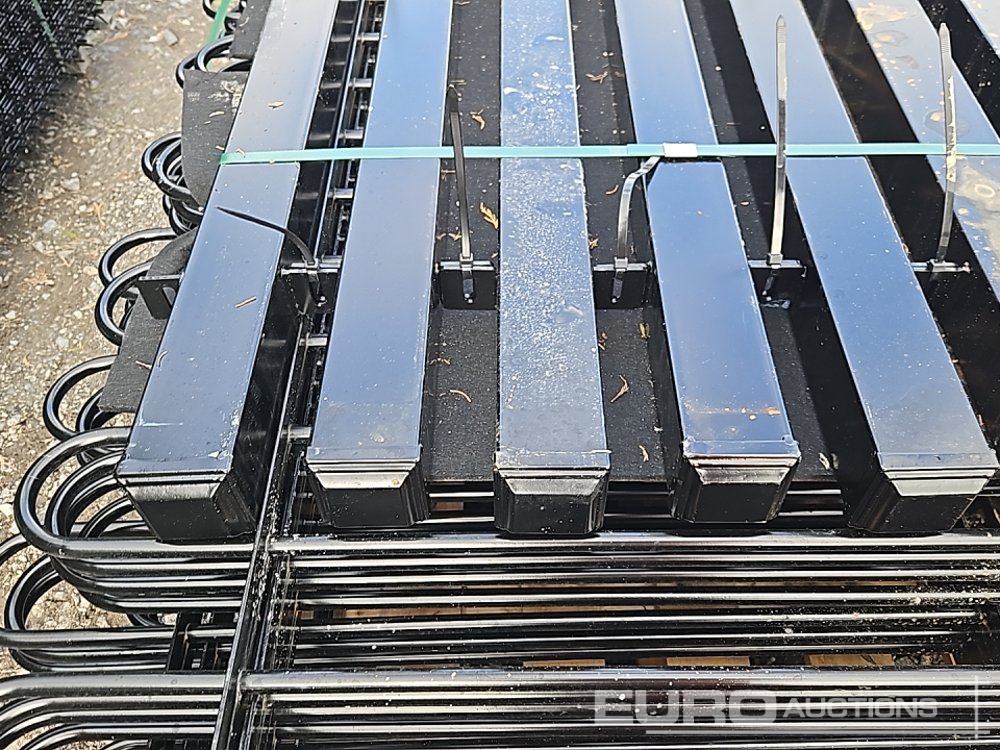 Unused Bow Top Powder Coated Fencing 2m x 1m Panels (10 of), Posts (11 of)