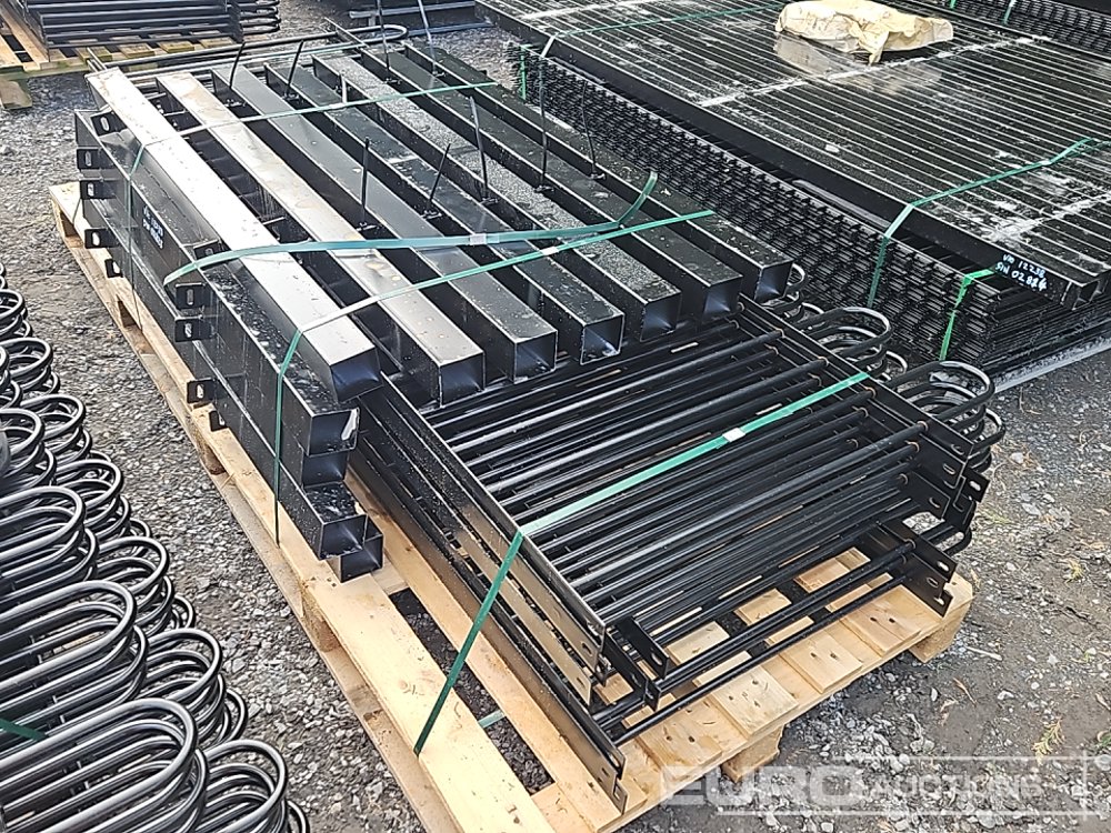Unused Bow Top Powder Coated Fencing 2m x 1m Panels (10 of), Posts (11 of) - 650002823