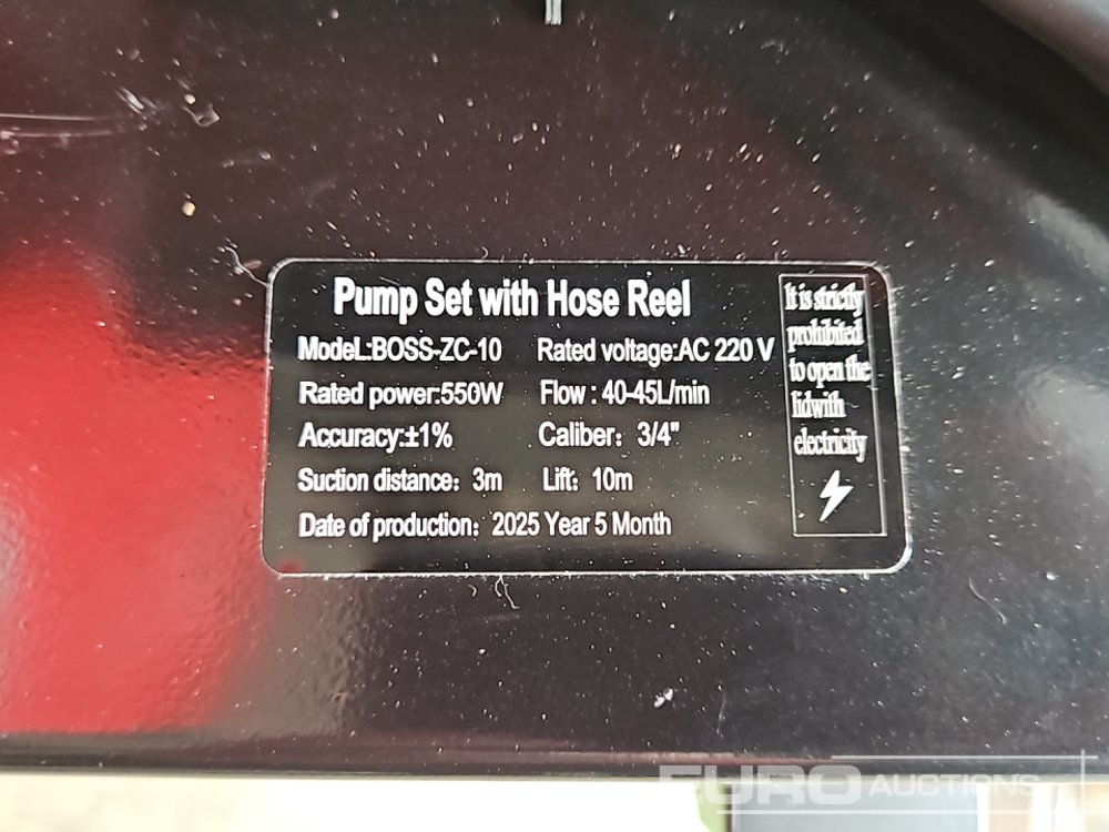 Unused Boss 220v Pump, Retractable Hose Reel, 10m Hose, Flow Meter - 002839
