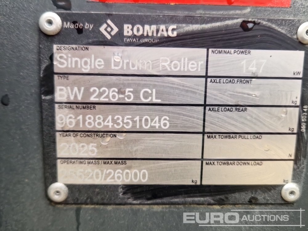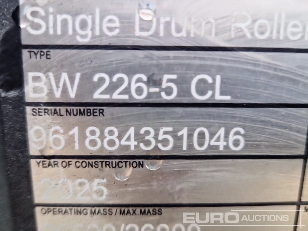 Unused 2025 Bomag BW226-5CL Single Drum Vibrating Roller (Meter Reading: 9 Hours) - 961884351046