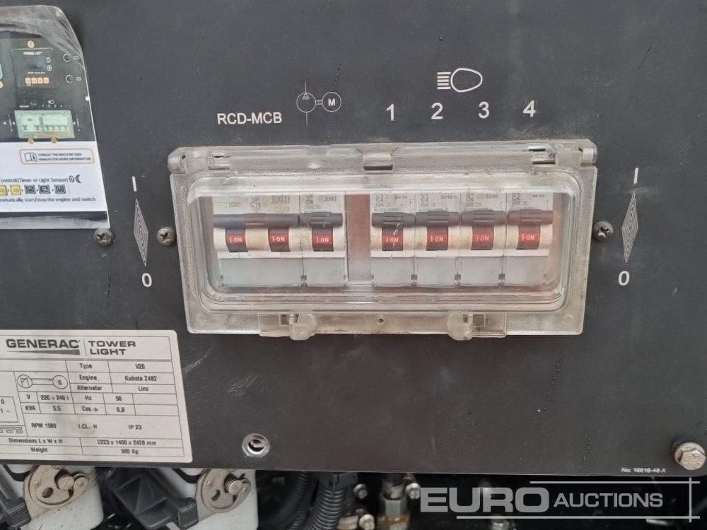 2017 Generac V20 Single Axle LED Lighting Tower, Kubota Engine (Parts Missing) - 1705284