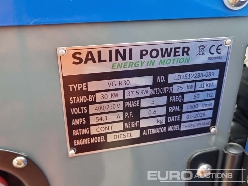 Unused 2026 Salini VG-R30 37.5kVA Generator, 4 Cylinder Engine - LD2512288089