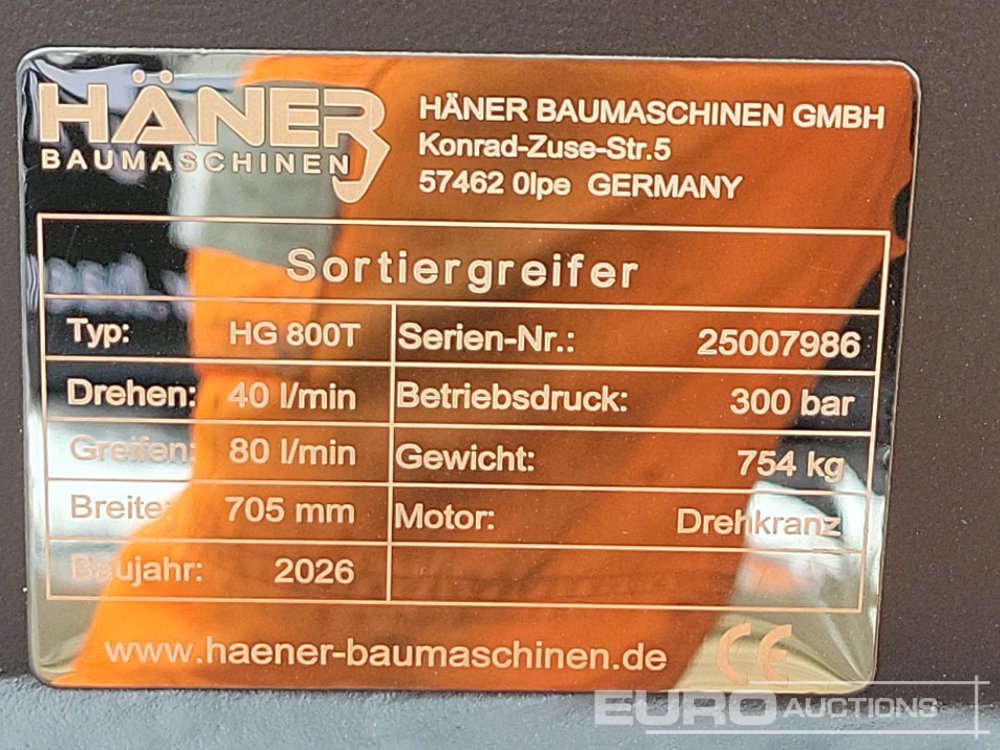 Unused 2026 Häner HG800T Hydraulic Rotating Selector Grab - 25007986