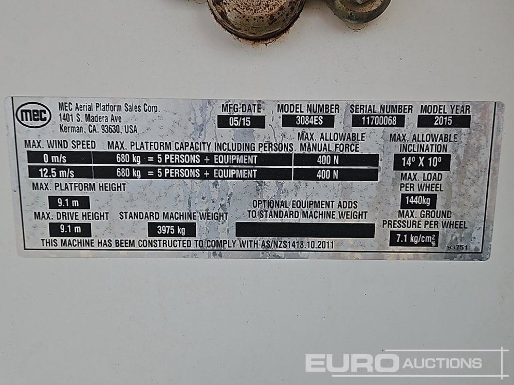 2015 JLG MEC3084ES