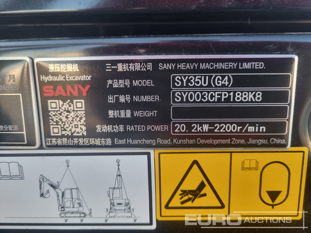 Unused 2025 Sany SY35U Rubber Tracks, Blade, Offset, Piped, Aux. Piping, A/C, QH (NO CE - Ubicado en Depósito Aduanero Bajo Control Aduanero, No Libre Circulación en la UE - Cargos Aplicables) - SY003CFP188K8