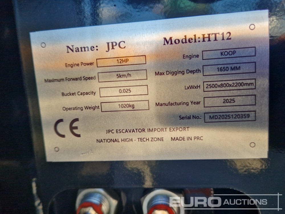 Unused 2025 JPC HT12 Rubber Tracks, Blade, Piped, Bucket - MD2025120359