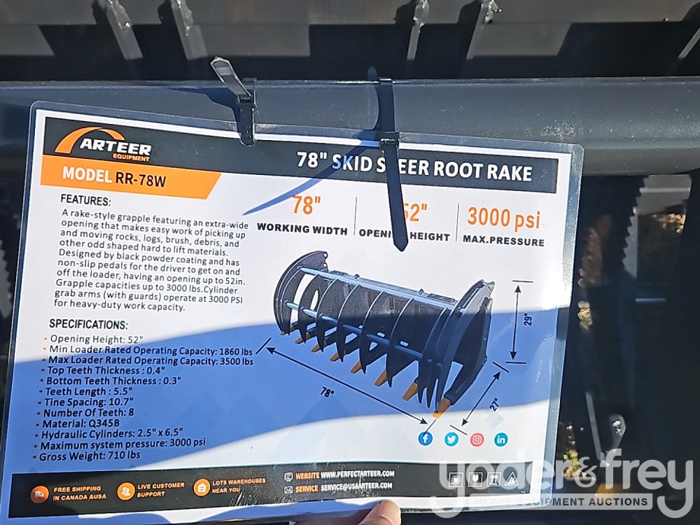 Unused 2025 Arteer RR-78W 78" Root Rake to suit Skidsteer Loader - ART2025CK88806000