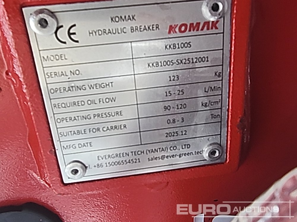 Unused 2025 Komak KKB100S Hydraulic Breaker to suit 1-3 Ton Excavator - 100354846