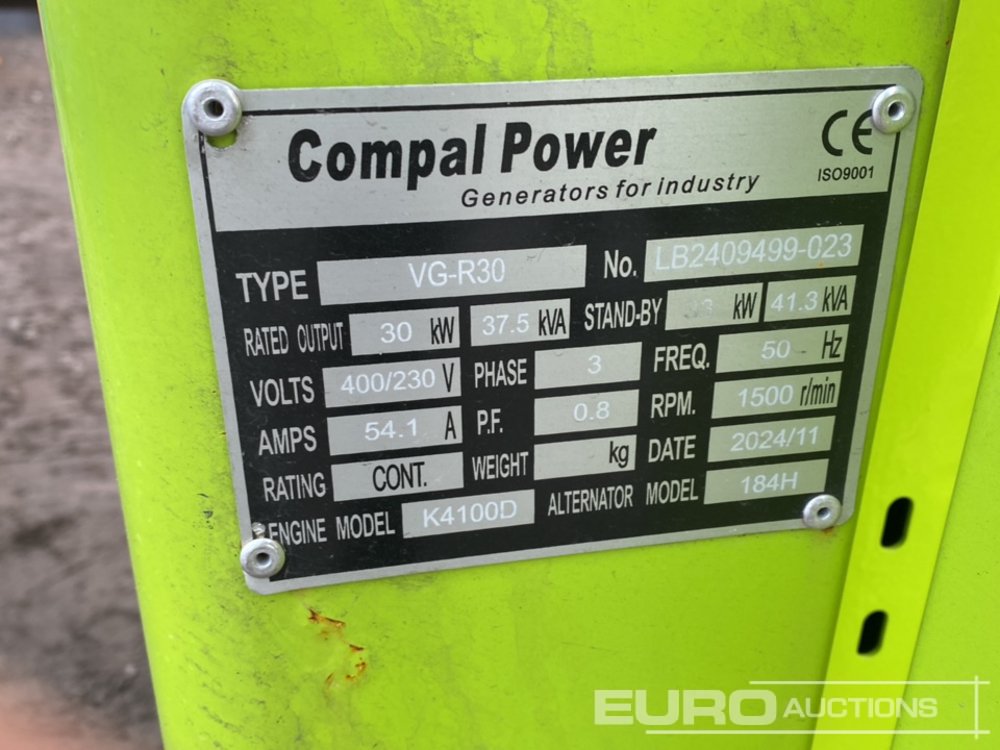 2024 Compal Power VG-R30 37.5kVA Generator, 4 Cylinder Engine - LB2409499-023