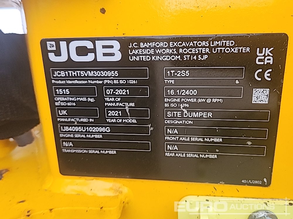 2021 JCB 1T-2S5 1 Ton Hi Tip Dumper, Roll Bar (Meter Reading: 620 Hours) - JCB1THT5VM3030955