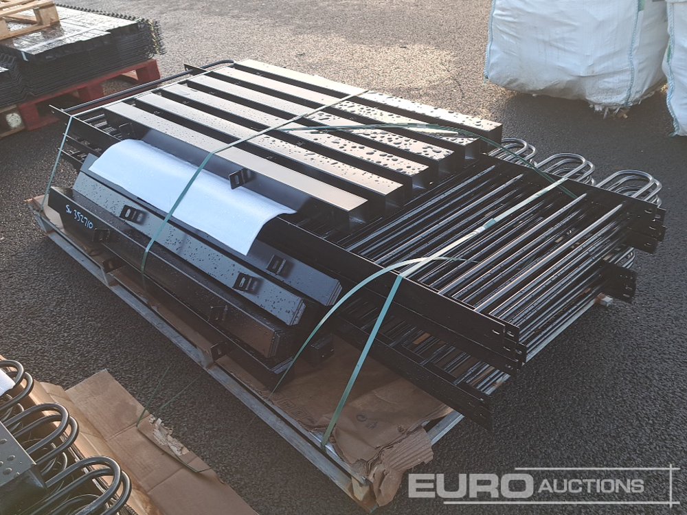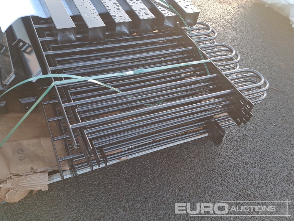 Unused 20m Bow / Round Top Powder Coated Steel Fencing, 10x2m Panels, 11 Posts - 100360461