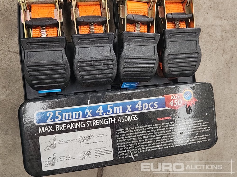 Unused 4Pc 4.5m Ratchet Strap Sets (5 pcs) - 100360778
