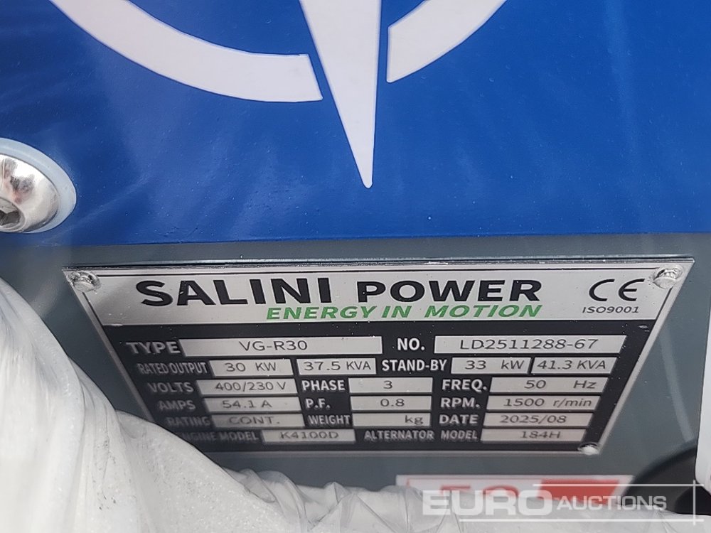 Unused 2025 Salini VG-R30 30kVA Generator, 4 Cylinder Engine - 100361685