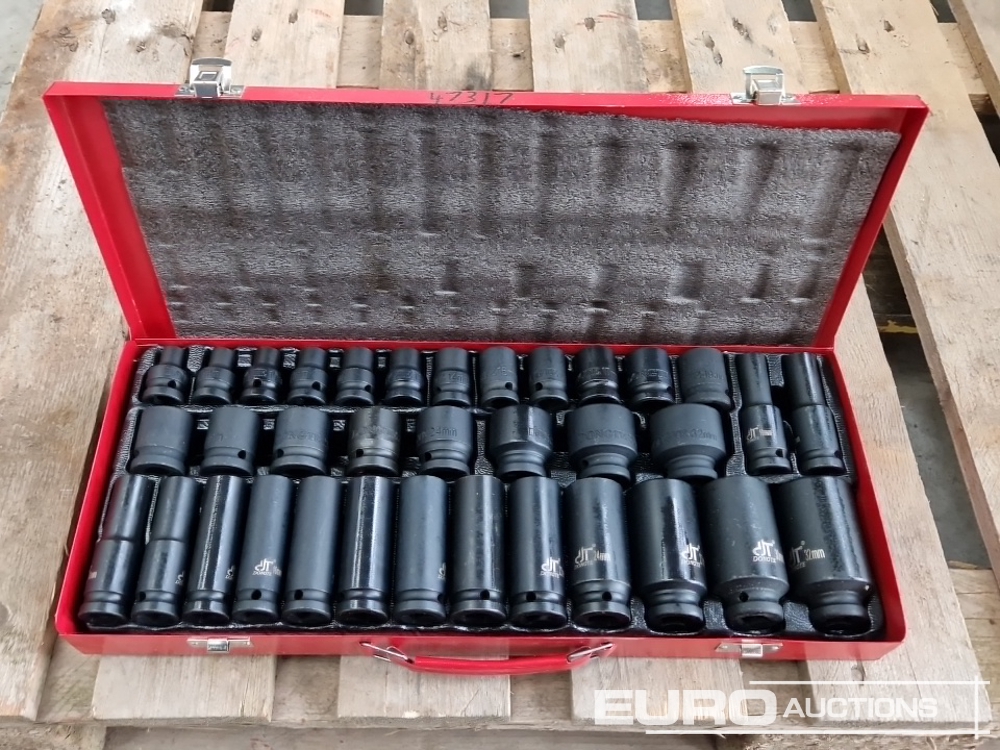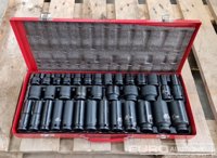 Unused 35 Piece 1/2" Drive Air Impact Socket Set, Steel Case - 100361882