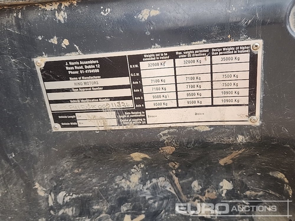 2010 Hino 700-3241 8x4 Tipper Lorry, Manual Gearbox, Thompsons Body, A/C - LX10 AVY - JHEFY1EUK00011326