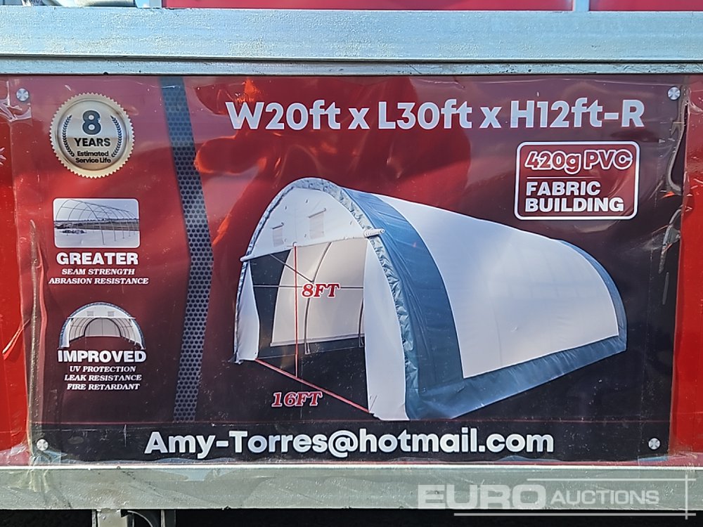 Unused 30' x 20' x 12' PVC Dome Storage Shelter (Cannot Be Reconsigned)