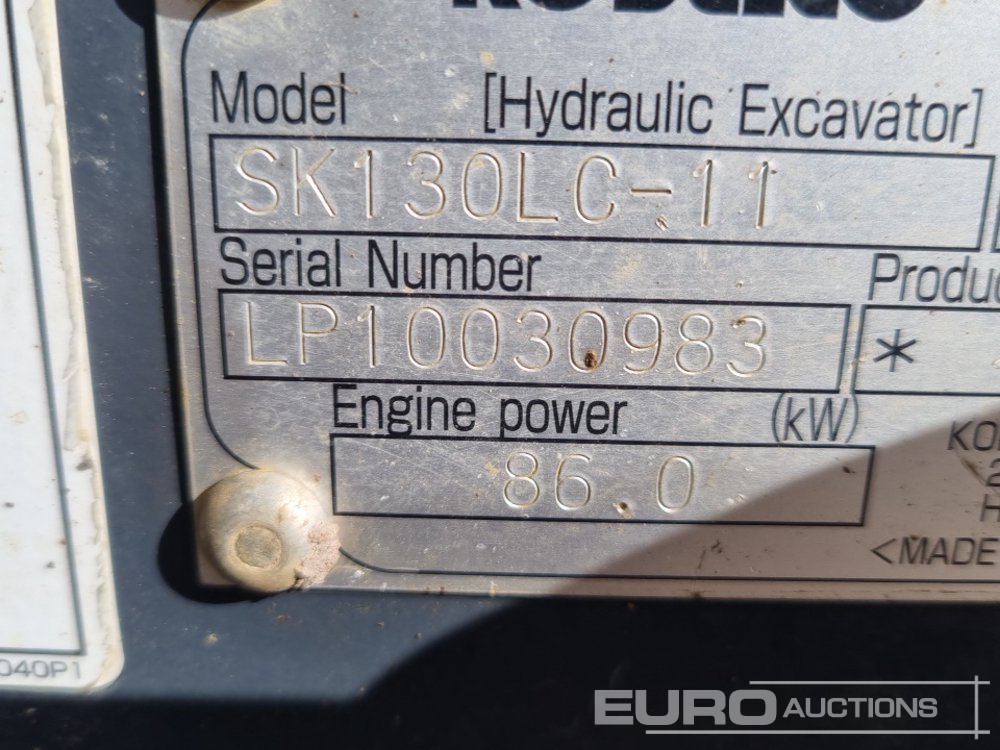 2023 Kobelco SK130LC-11 700mm Pads, CV, QH, Piped, Reverse Camera, Side Camera, A/C - LP10030983