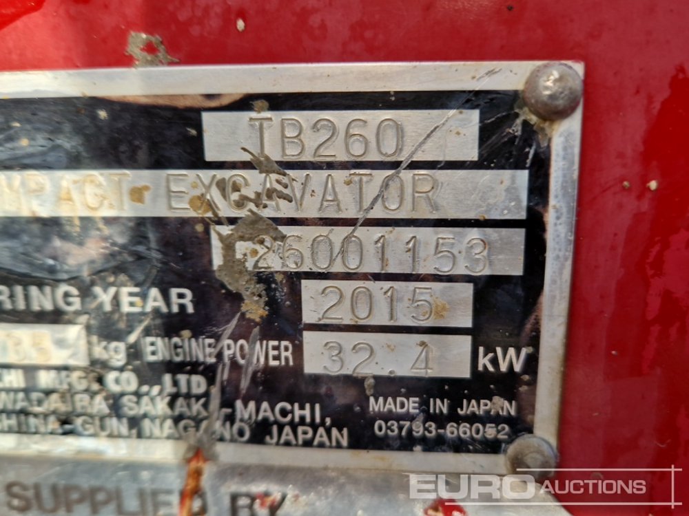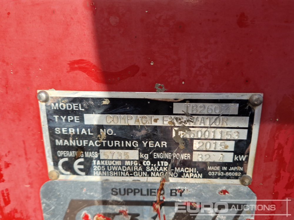 2015 Takeuchi TB260 Rubber Tracks, Blade, Offset, CV, QH, Piped, Aux. Piping, A/C - 126001153