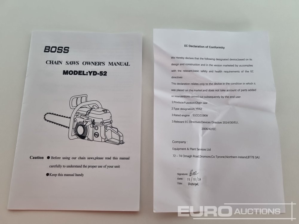 Unused Boss YD-52 Petrol Chain Saw, 20" Blade - 140526935