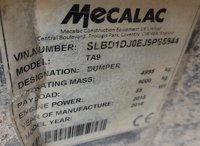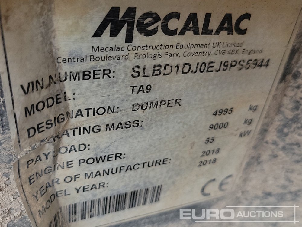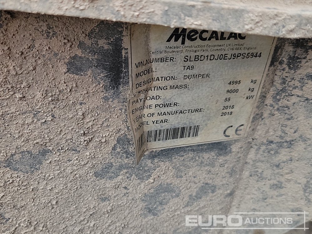 2018 Mecalac TA9 9 Ton Dumper, Roll Bar - SLBD1DJ0EJ9PS5944