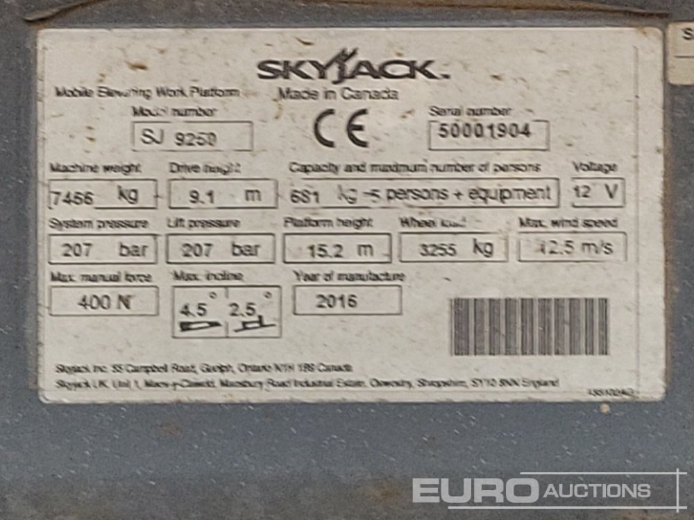 2016 SkyJack SJ9250