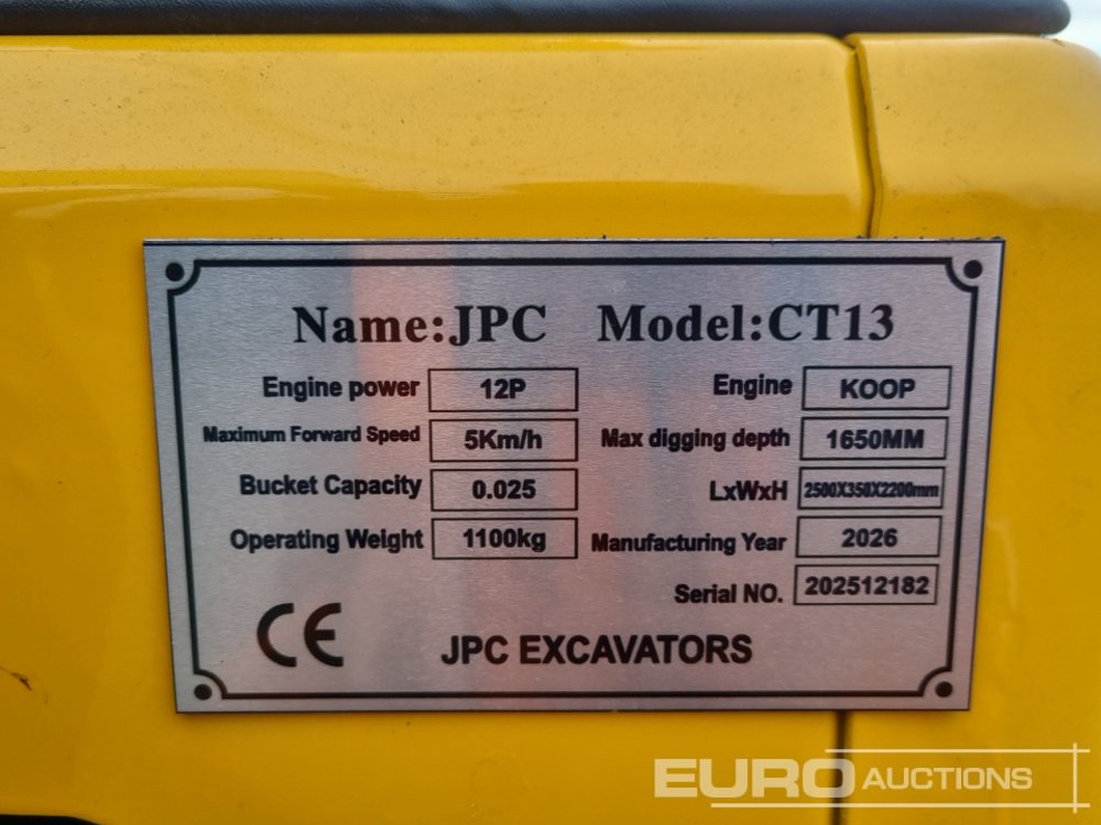 Unused 2026 JPC CT 13 Rubber Tracks, Blade, Piped, Bucket - 140527529