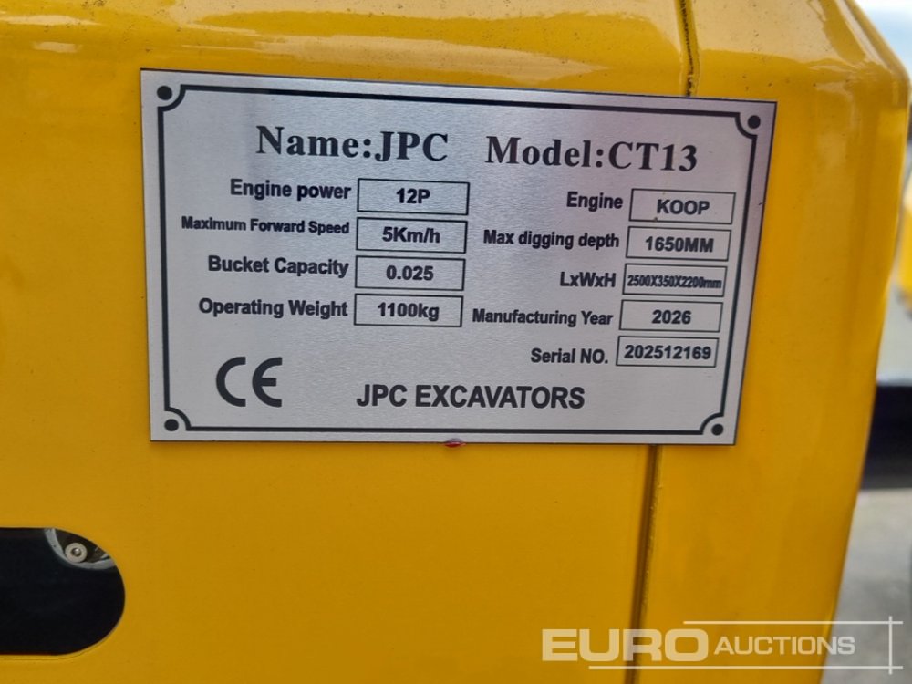 2026 JPC CT 13 Rubber Tracks, Blade, Piped, Bucket - 140527543