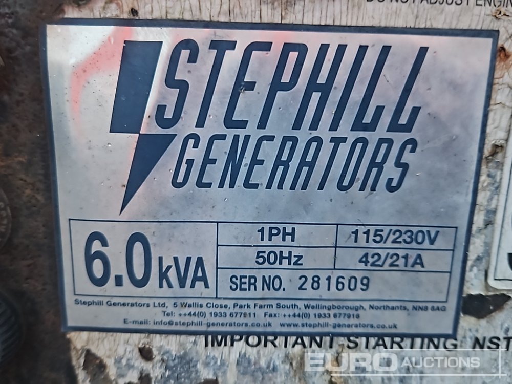 Stephill 6kVA Generator, Kubota Engine - 281609
