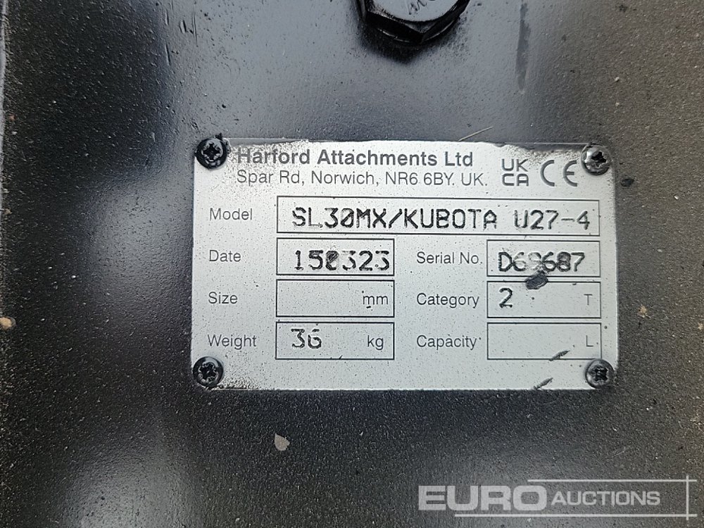Unused Harford SL30MX Manual QH to suit Kubota U27-4 (Declaration of Conformity Available) - D69687