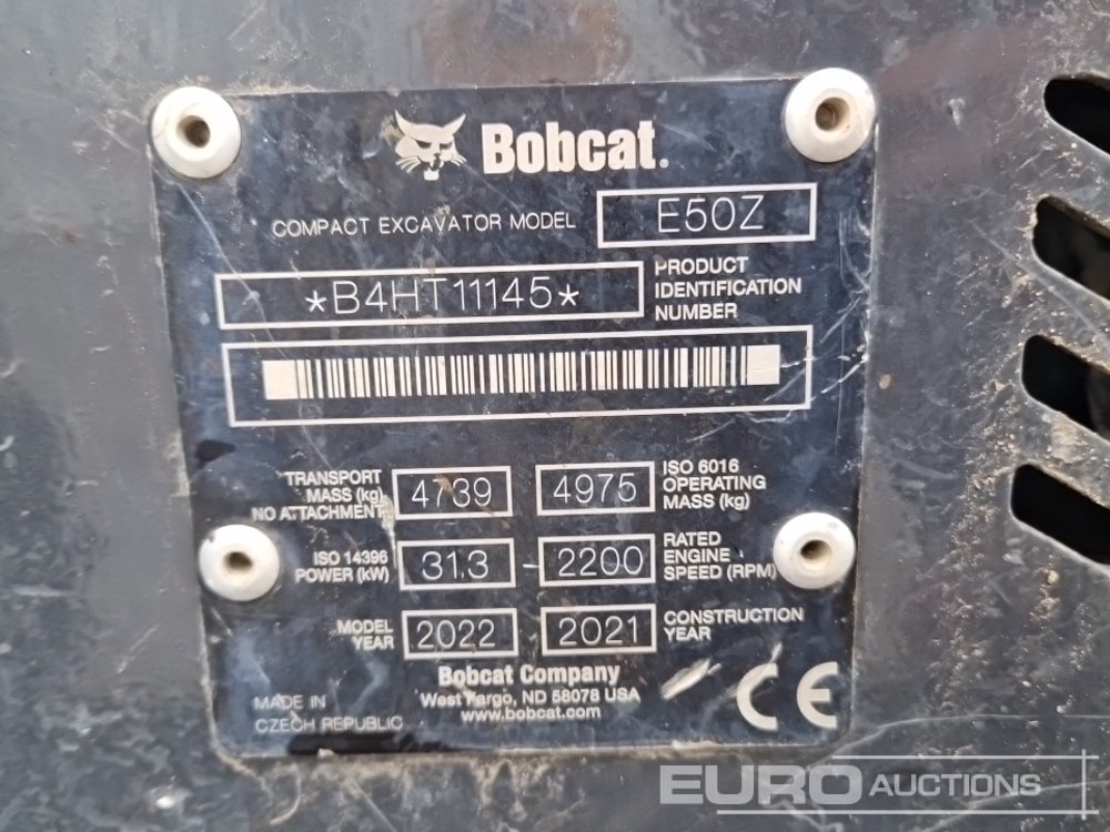 2021 Bobcat E50Z Rubber Tracks, Blade, Offset, QH, Piped - B4HT11145