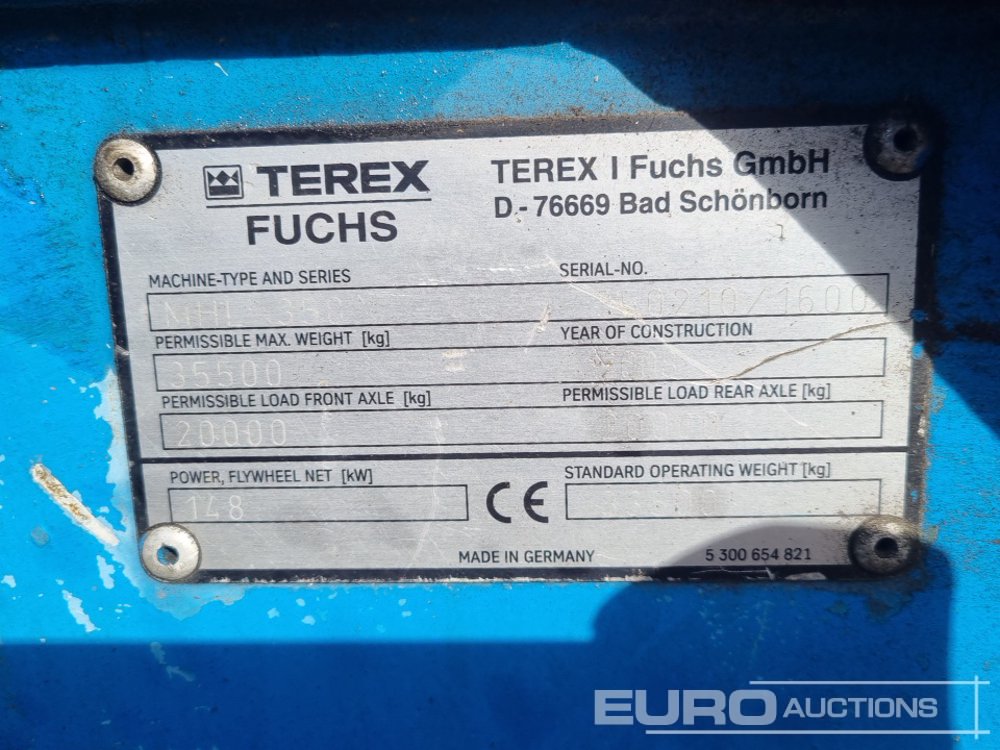 Terex - Fuchs MHL350 Wheeled Material Handler, Piped, Aux. Piping, Hi Rise Cab, Stabilisers, A/C - 3502101600
