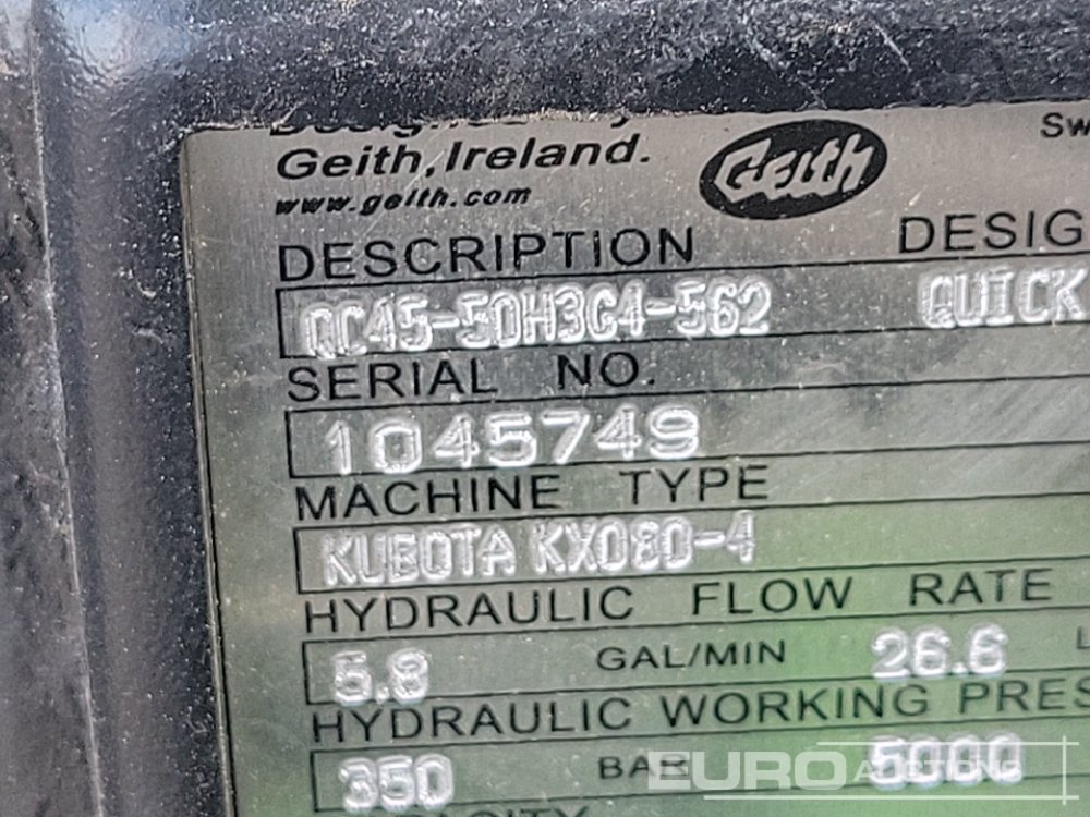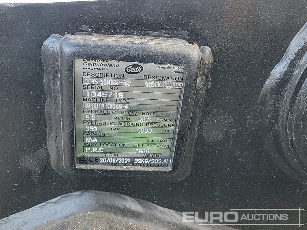 Unused Geith Hydraulic QH 60mm Pin to suit 10 Ton Excavator, Hydraulic Fitting Kit - 1045749
