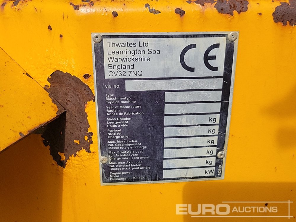 2012 Thwaites 3 Ton Dumper, Roll Bar - SLCM570Z1208C3826