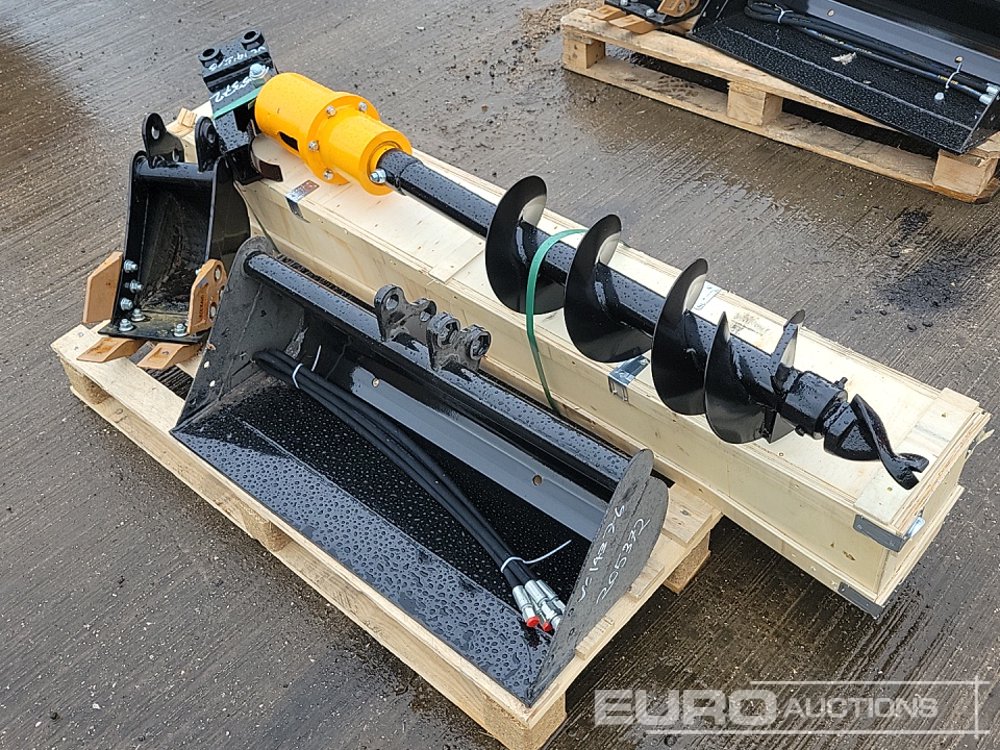 Unused 2025 JPC KV200 200mm Auger Flight & Hydraulic Drive & 32" Ditching, 9" Digging Bucket 25mm Pin to suit Mini Excavator - 20251205372