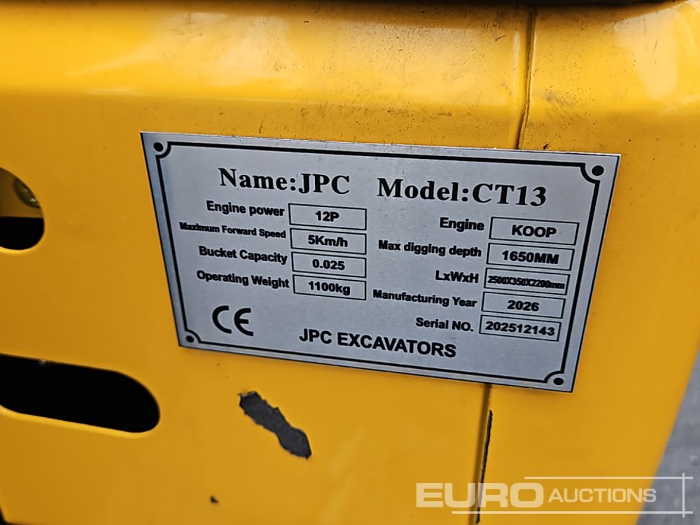 Unused 2026 JPC CT 13 Rubber Tracks, Blade, Piped, Bucket - 140529451