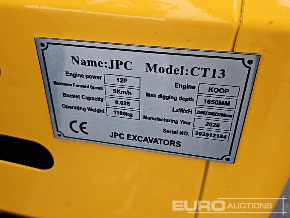 Unused 2026 JPC CT 13 Rubber Tracks, Blade, Piped, Bucket - 140529463