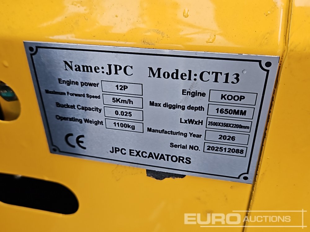 Unused 2026 JPC CT 13 Rubber Tracks, Blade, Piped, Bucket - 140529474