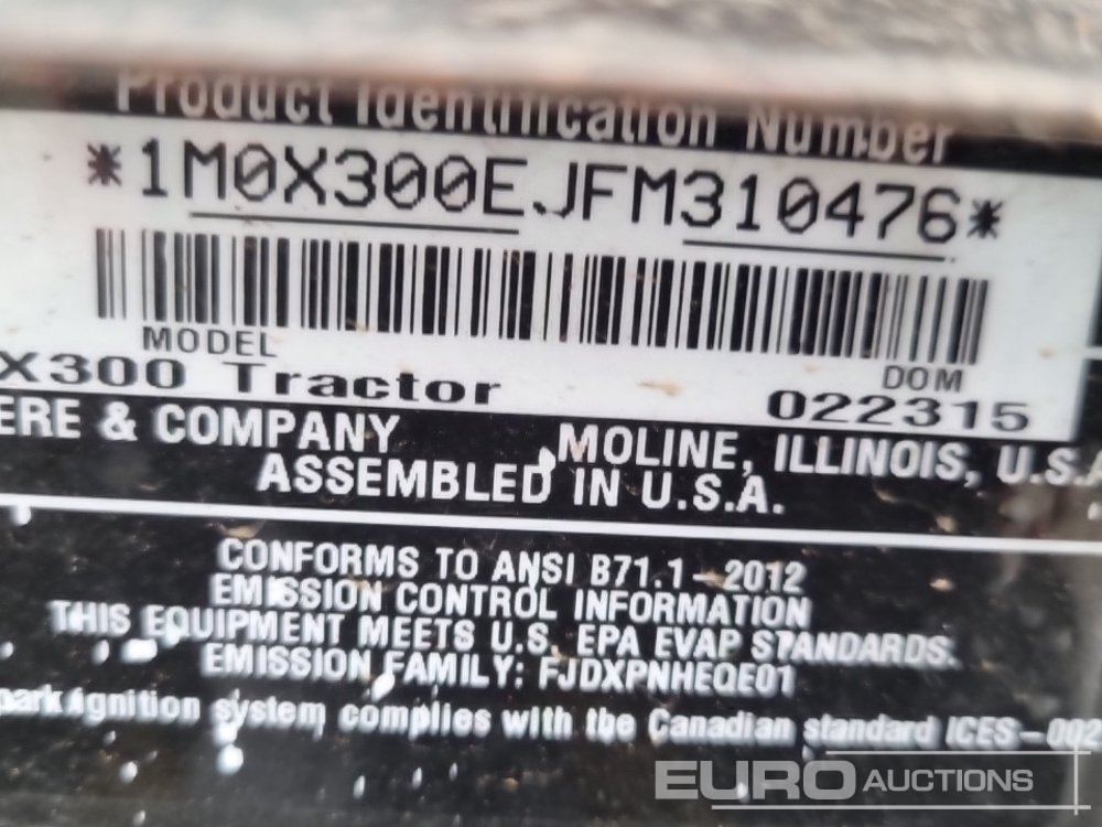 2023 John Deere X300 Petrol Ride on Lawnmower, Cutting Deck - 1M0X300EJFM310476