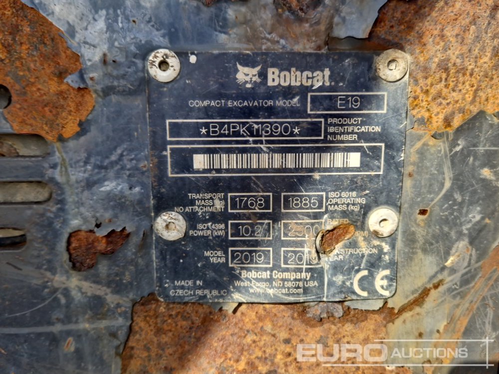 2019 Bobcat E19 Rubber Tracks, Blade, Offset, QH, Piped - B4PK11390